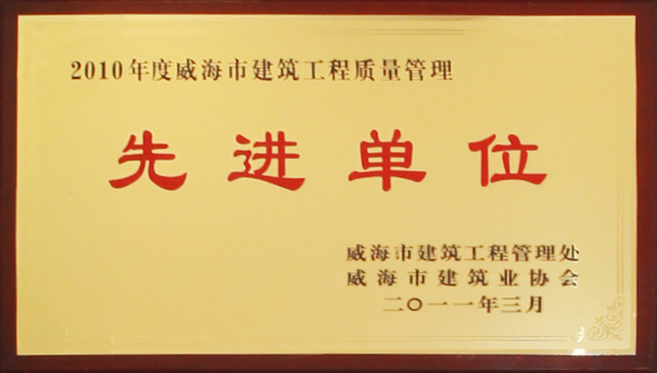 公司連續(xù)八年榮獲威海市“誠信開發(fā)企業(yè)”、“建筑施工誠信企業(yè)”,連續(xù)九年被評為威海市級“守合同重信用企業(yè)”,多次被評為威海市“市級文明單位”、“質(zhì)量管理先進(jìn)企業(yè)”、 “安全管理先進(jìn)企業(yè)”,乳山市“優(yōu)秀企業(yè)”、“先進(jìn)民營企業(yè)”、“納稅明星企業(yè)”,在社會上逐步樹立了誠信、穩(wěn)健的企業(yè)形象。
